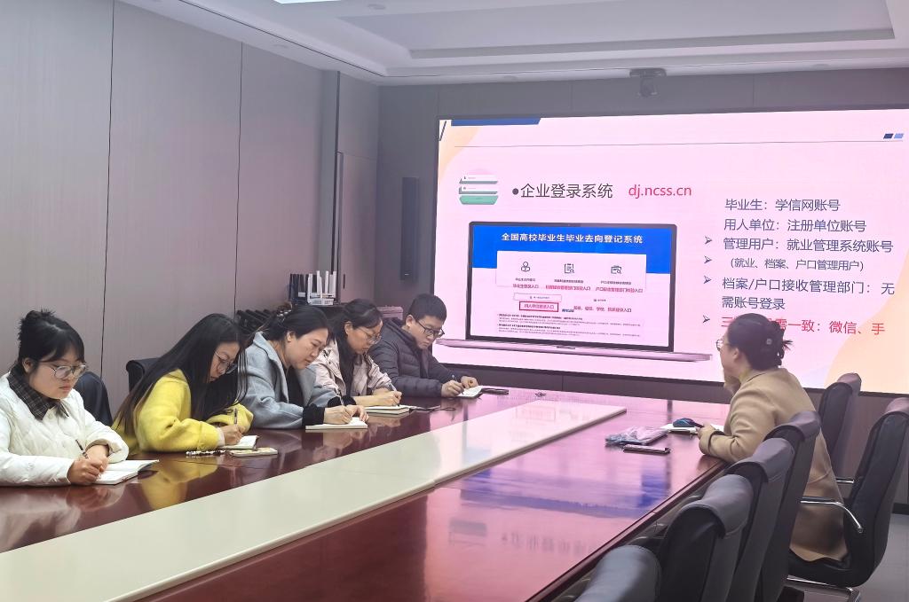 为精准落实全国高校毕业生就业监测与服务工作要求,规范毕业生就业信息填报流程,提升就业数据质量与就业服务效率,切实为2026届毕业生顺利就业保驾护航,11月5日下午,招生就业处在行政楼三楼会议室组织召开了全国高校毕业生就业系统填报专题培训会。各二级学院就业工作干事及招生就业处相关人员参会,会议由就业培训中心主任谭薇主持。