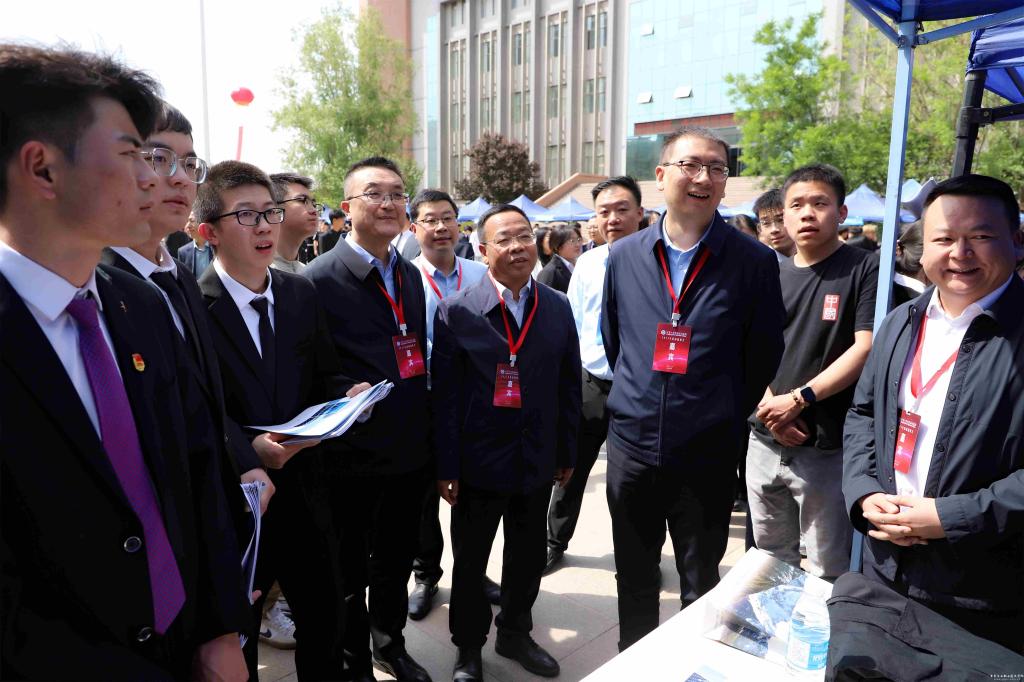 为全面落实党中央、国务院对高校毕业生就业工作的决策部署和省委、省政府工作要求,多措并举推动我校2025届毕业生实现高质量充分就业,4月28日下午,由我校主办,共青团天水市委员会、天水市工商联协办的“省内重点企业进校园”专场招聘会在图书馆广场举行。团市委书记杨扬,市工商联党组成员、副主席马斐,学校党委书记坚葆林、副院长曹惠清出席开幕式。我校3000余名学生参加了招聘活动。
