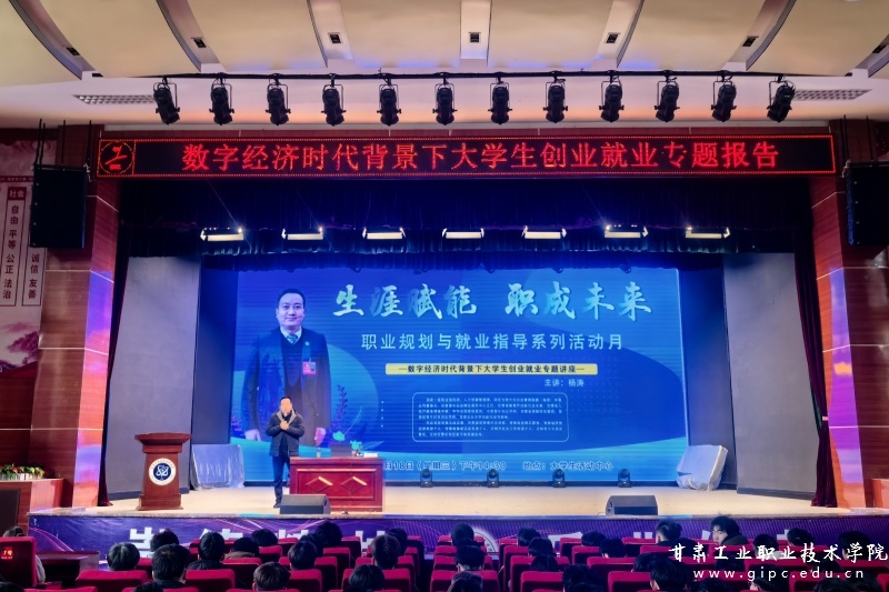 12月11日、12月18日,国家一级职业指导师、人力资源管理师、甘肃省教育厅创业就业专家杨涛分别就数字经济时代背景下大学生创业就业、职业生涯规划开展了两次专题讲座。帮助我校一、二年级同学充分认识当前大学生生涯发展现状,明确职业生涯规划的意义和方法以及求职就业应对之道。