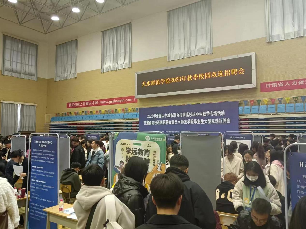 11月9日,由甘肃省人力资源和社会保障厅、甘肃省教育厅、省内3所高校协办的2023年全国中大城市联合招聘高校毕业生秋季专场活动甘肃省高校巡回招聘会暨天水师范学院毕业生大型双选招聘会在天水师范学院举行。