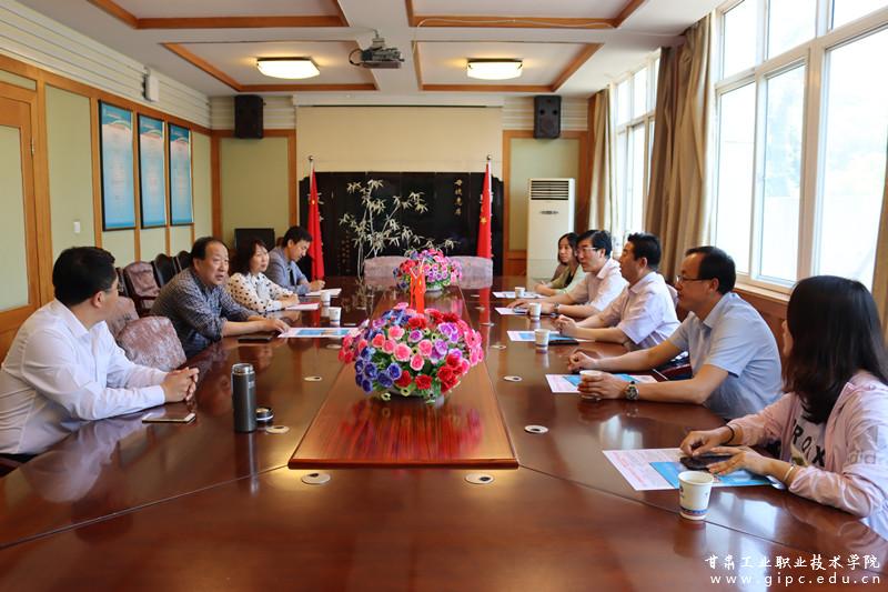 5月29日上午,镇原县职业中等专业学校校长杜银社一行5人到我校看望参加全省中等职业学校学生技能大赛的指导教师和参赛学生,期间副校长李玉生陪同参观了学校地质园、智能制造中心等实习实训室,并在行政楼二楼会议室主持召开座谈会,李校长对学校发展历史及办学特色做了简要介绍。两校就对口专业人才培养质量、专业建设等问题进行了深入的洽谈。招生处、旅游学院负责人参加会议。