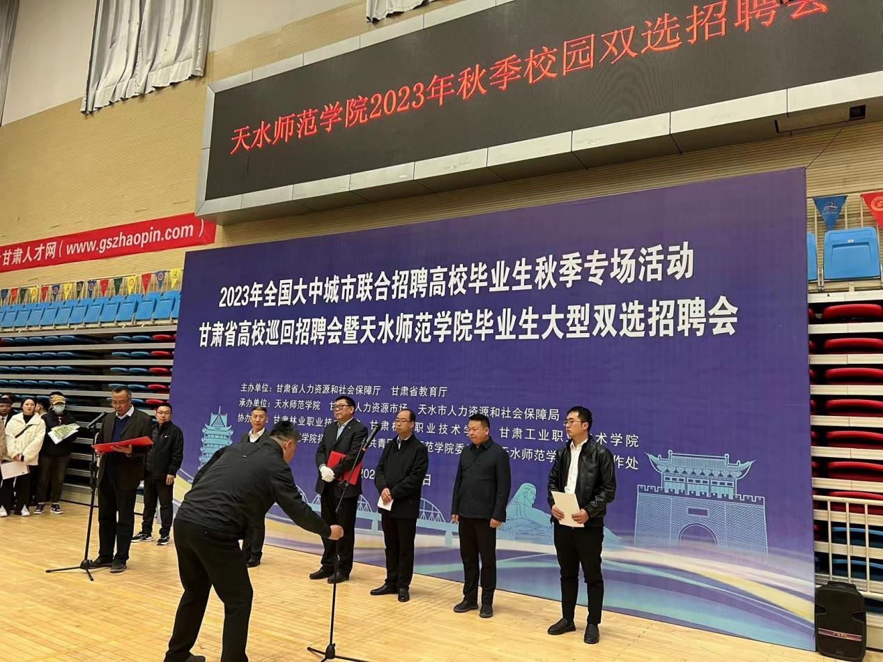 11月9日,由甘肃省人力资源和社会保障厅、甘肃省教育厅、省内3所高校协办的2023年全国中大城市联合招聘高校毕业生秋季专场活动甘肃省高校巡回招聘会暨天水师范学院毕业生大型双选招聘会在天水师范学院举行。