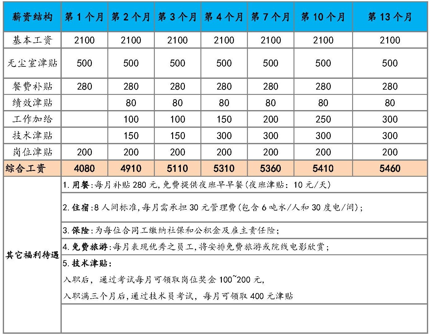 l需适应至无尘车间工作,每月加发无尘室津贴500元.